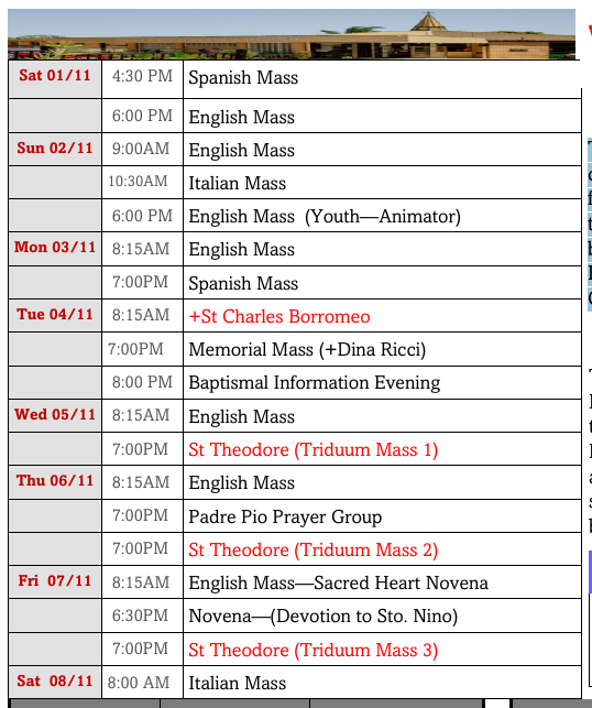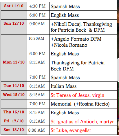 Mon - Fri 8:15am in English. Tuesday in Italian
