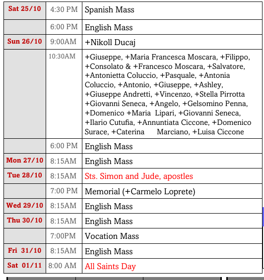Mon - Fri 8:15am in English. Tuesday in Italian